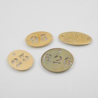 En laiton 10/10e ou 5/10e, Aluminium 10/10e, ou en Inox 10/10e, ces plaquettes permettent l’identification de clefs, casiers, vestiaires, machines …