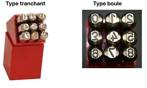 Ces jeux à frapper s'utilisent manuellement à l'aide d'un marteau et permette une empreinte lisible et nette sur le matériau.